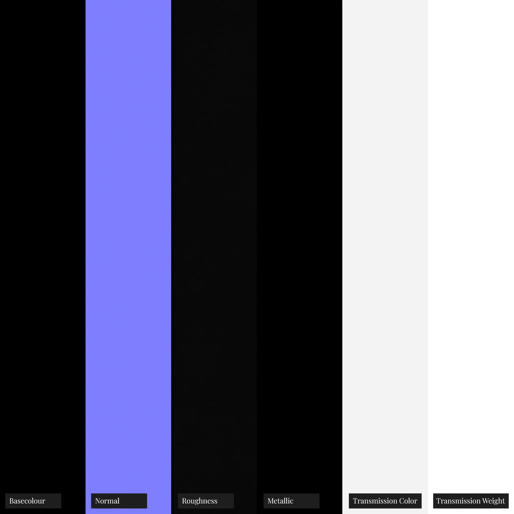 - ✓Ambient Occlusion, Basecolor, Metallic, Normal, Roughness, Transmission Color, Transmission Weight maps