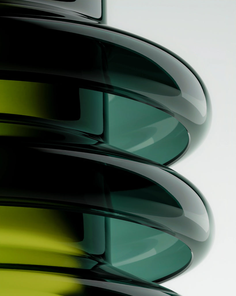Smoked tinted glass, a variation of body tinted glass, is fabricated with specific additives that heighten light absorption across the visible spectrum. This process imparts a darker, richer hue and reduces transmissivity, creating a 'smoked' effect. The colour appears deep and saturated even in thinner sections, for a pronounced, moody aesthetic.