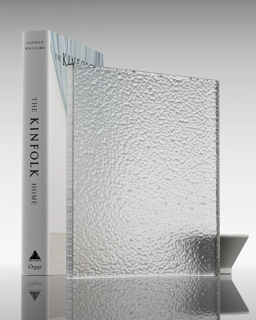 Fine hammered glass is fabricated by pressing molten glass into a mould with a textured, irregular relief mimicking hand hammered indentations. This process imparts a randomized pattern, creating an organic visual distortion. A subsequent frosting process uniformly etches the surface into a non reflective matte finish that enhances privacy by diffusing light.