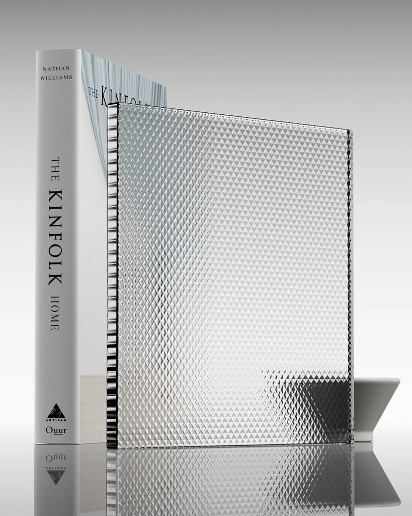 Knurled glass is produced by pressing molten glass into a mould with a precise, repeating diamond shaped relief. This technique imparts a tactile, geometric texture that refracts and distorts light through its structured, faceted pattern. The knurling provides both decorative appeal and enhanced grip.