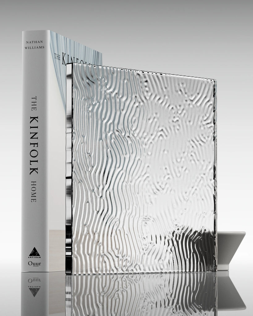 Textured glass is fabricated with specialised surface treatments applied to a standard glass sheet. A controlled chemical or thermal process creates an intricate, organic pattern reminiscent of natural reaction diffusion systems. This technique forms a complex, cellular or weblike relief on the glass surface, which uniquely refracts light while preserving the material's structural integrity.