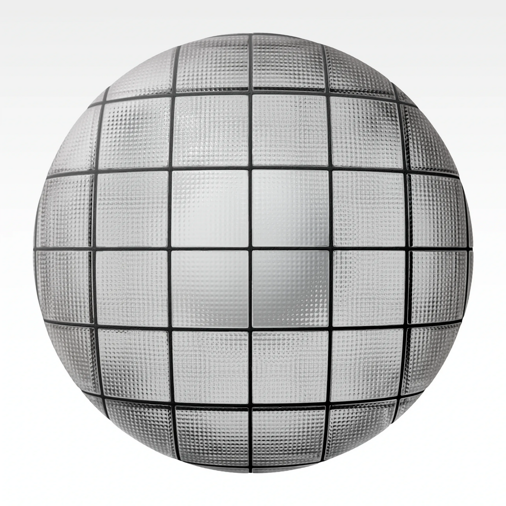 This seamless 4K PBR material captures the composite finish by pairing a detailed surface topography of the cross reeded pattern with a high roughness value to simulate the frosted effect. It accurately portrays how light is both distorted by geometry and scattered by the surface texture. Ideal for privacy screens, bathroom partitions, and decorative architectural elements, it offers a realistic representation of textured, translucent glass.