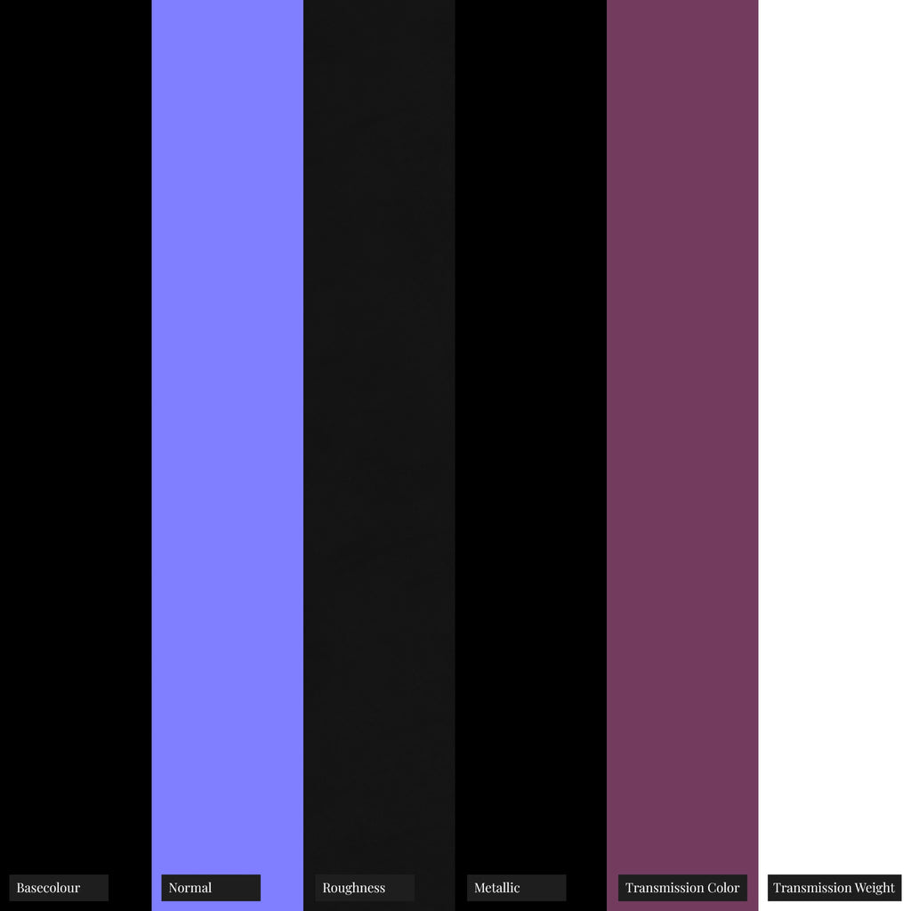 - ✓Ambient Occlusion, Basecolor, Metallic, Normal, Roughness, Transmission Color, Transmission Weight maps