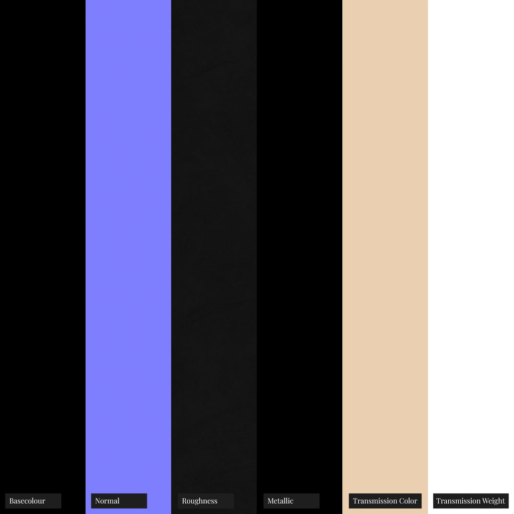 - ✓Ambient Occlusion, Basecolor, Metallic, Normal, Roughness, Transmission Color, Transmission Weight maps