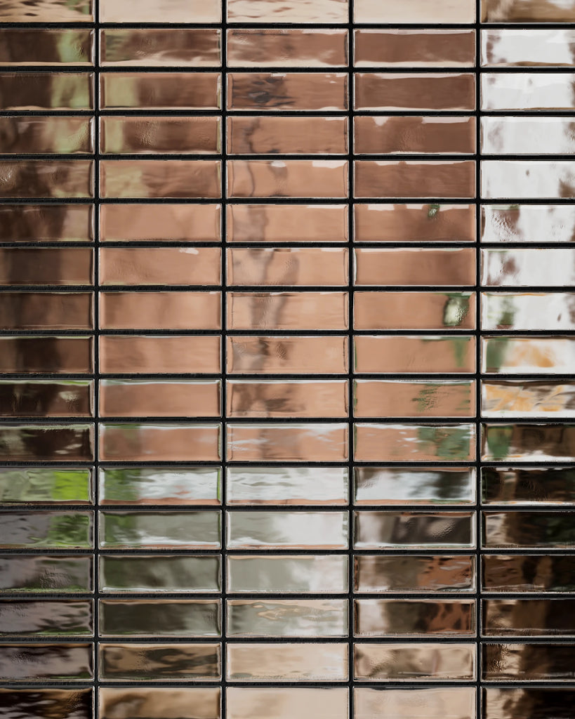 This seamless 4K PBR material uses a detailed surface topography to portray the horizontal ribbed profile, defined by bold black grout. It accurately simulates the subtle, silky shimmer of anisotropic reflections across the fine directional marks, a key material feature. Tailored for privacy screens, architectural features, and bathroom renders, this texture creates complex light refraction effects.