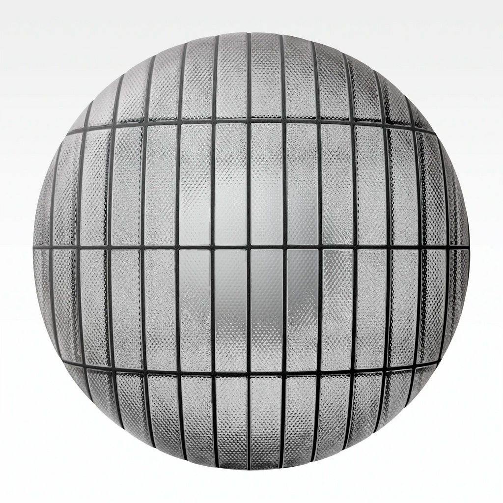 This seamless 4K PBR material's detailed surface topography accurately portrays the knurled pattern's specific profile, framed by black grout. It simulates the complex light distortion and scattering from the dense grid of facets. Ideal for decorative partitions, shower screens, and industrial inspired interior renders, this texture offers an authentic tool for creating intricate refraction effects.