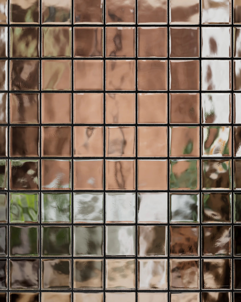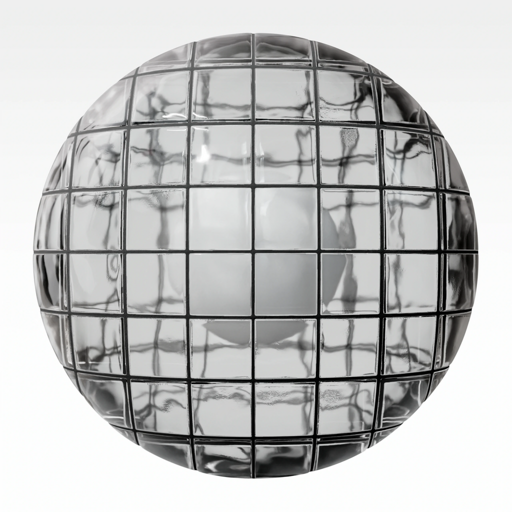This seamless 4K PBR material uses a detailed surface topography to accurately portray the square pattern, framed by contrasting black grout. It correctly simulates the complex light distortion created by the repeating forms. Ideal for architectural partitions, feature walls, and stylised interior renders, this texture is an authentic tool for creating nuanced light refraction effects.